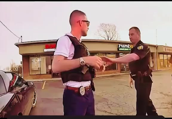 The viral video begins with a quiet suburban shopping center at sunset. A man wearing tactical gear stands beside his unmarked vehicle, typing on his phone and keeping an eye on a nearby storefront. Moments later, two patrol officers arrive at high speed, slam their doors shut, and march toward him with hands already hovering over their holsters.
