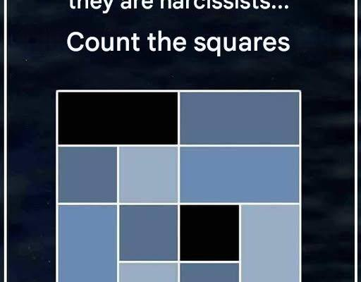 Narcissists tend to believe they are always right, often ignoring the perspectives of others. When asked to count squares, some people may give a quick, confident answer without double-checking their work. This hasty judgment reflects a common narcissistic trait: excessive confidence in their own abilities and perceptions.