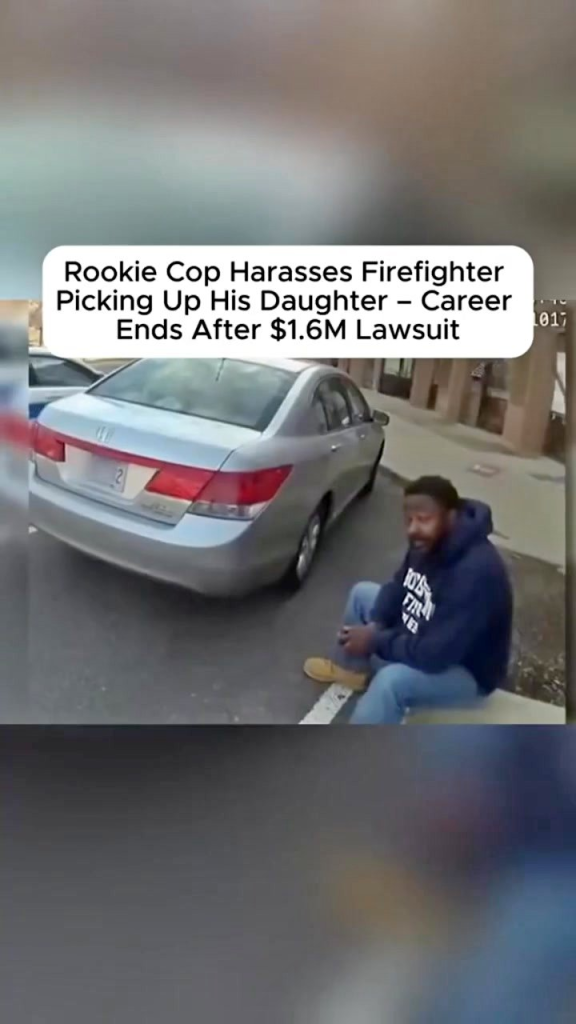 The afternoon was supposed to be simple: a father arriving at his daughter’s school to take her home after class. Instead, it turned into a confrontation that would later spark national attention and end with a $1.6M lawsuit. According to the footage, the firefighter sat calmly near his vehicle, waiting as parents often do, when a rookie officer approached with questions that quickly escalated beyond anything reasonable.