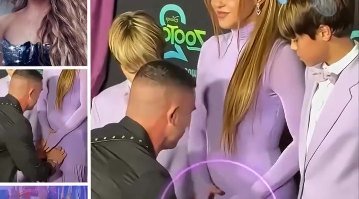 The clip, which instantly spread across social platforms, shows Shakira posing with her children while a stylist reaches over to adjust the front of her outfit. At first glance, the moment seems small and harmless — but fans picked up on her immediate reaction. With a subtle but firm gesture, Shakira guided the stylist’s hand away, maintaining her posture and composure.