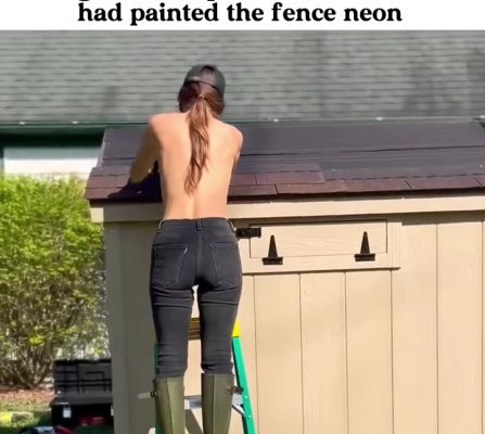 Photos show the woman confidently repainting parts of her property while standing on a ladder, unfazed by the controversy. “It’s my fence, my choice, and I love color. Life is too short for boring gray,” she reportedly said.