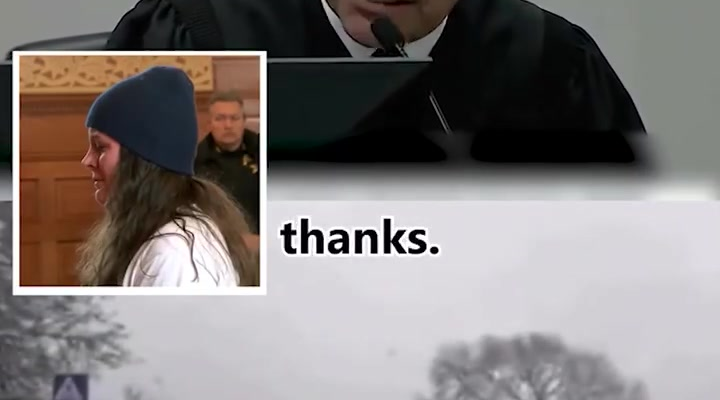 Images circulating online add fuel to the controversy. One shows a stern judge in a courtroom setting, seemingly delivering a sharp warning. Another inset image shows the woman involved, sitting quietly as legal proceedings unfold. The contrast between the icy roadside rescue and the courtroom tension has made the case even more unsettling.