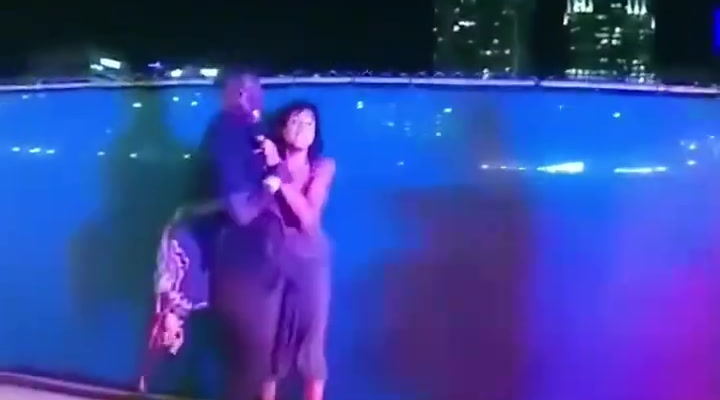 Footage shows the woman moving closer, grabbing onto the man as he attempts to step away. His body language suggests confusion and restraint, while hers reflects visible frustration. Voices rise, movements become sharper, and the calm atmosphere breaks apart in an instant.