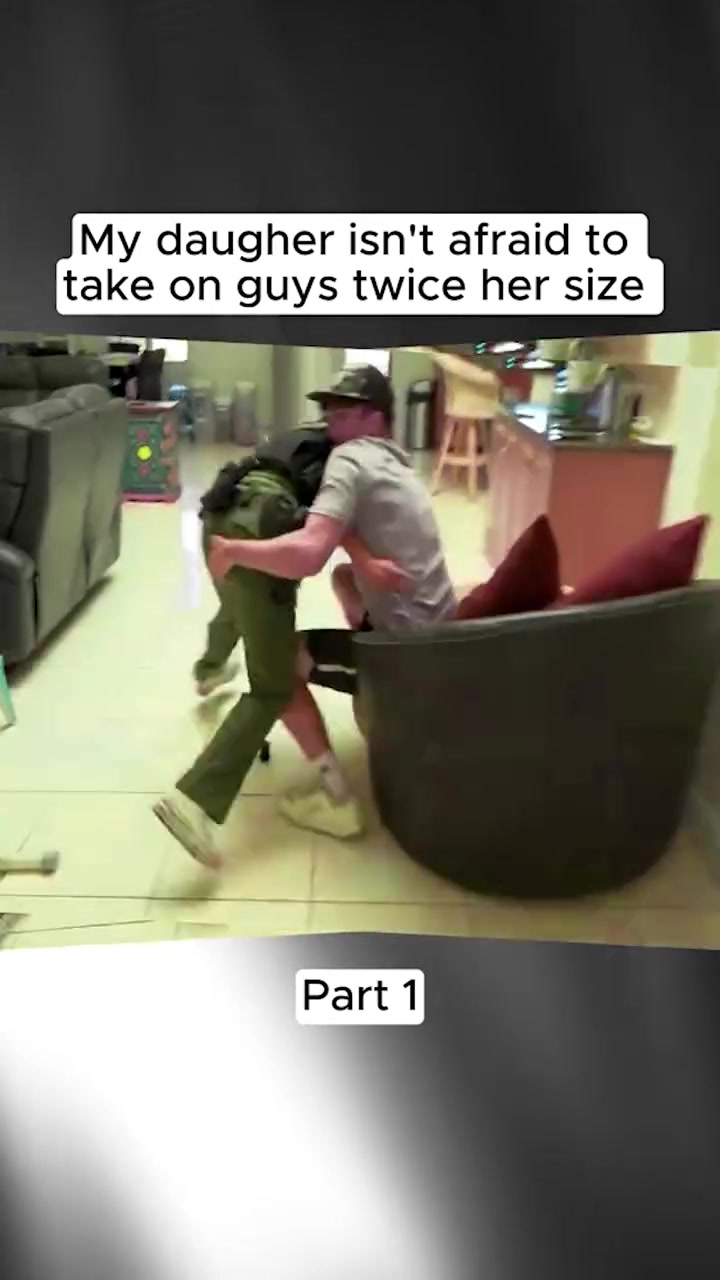 The short clip opens inside a modest living room. Furniture pushed aside. Tension already thick in the air. An officer moves in, attempting to control the situation calmly. But within seconds, everything changes. The girl reacts fast — faster than anyone expects — twisting, pushing, and resisting with surprising strength.