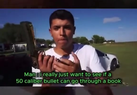 The footage, now widely shared online, shows a young man preparing for what he believed would be a controlled stunt. According to captions and audio circulating with the video, the goal was to test whether a powerful object could pass through a book — an idea inspired by curiosity and the desire to capture something dramatic on camera.