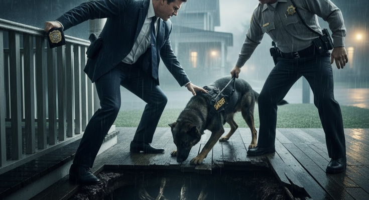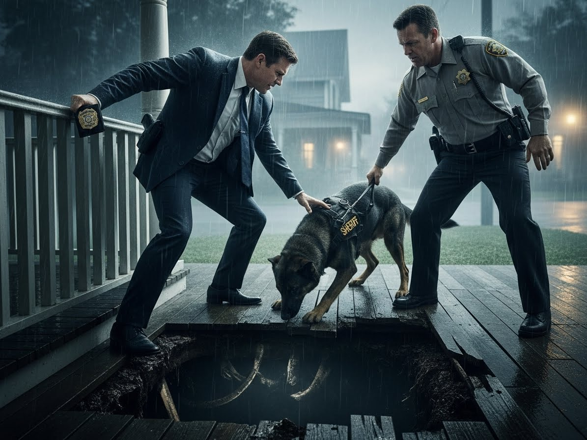 Buster limped back up the stairs, panting, blood on his muzzle—not his own. He licked my face.
