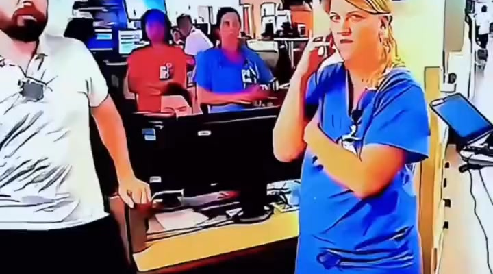 At the start of the video, the nurse is simply doing her job. She is calm, professional, and focused on her responsibilities. Nothing about the situation suggests conflict. She follows protocol, communicates clearly, and behaves exactly as medical professionals are trained to do.