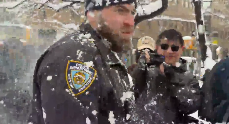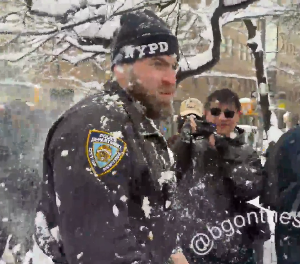 A tense scene is unfolding this afternoon at Washington Square Park, where individuals were seen throwing snowballs at officers from the New York City Police Department.