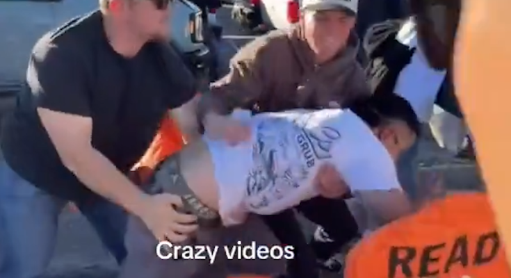 As officers attempted to detain him, the situation escalated when the individual resisted. Police brought him to the ground in order to gain control, and footage shows continued movement as the protester appeared to try to escape even after being taken down.