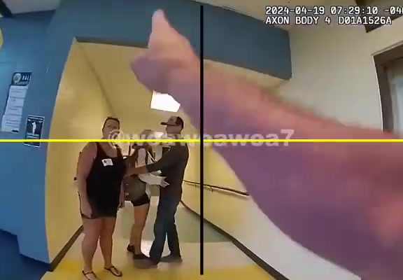 Bodycam footage from responding officers shows the father and daughter standing in the school hallway as tensions rise. Staff members can be heard trying to de-escalate, but the father repeatedly insists his daughter was “disrespected” and that the school “crossed the line.” The daughter, equally upset, is seen shouting at administrators while trying to record the encounter on her phone.
