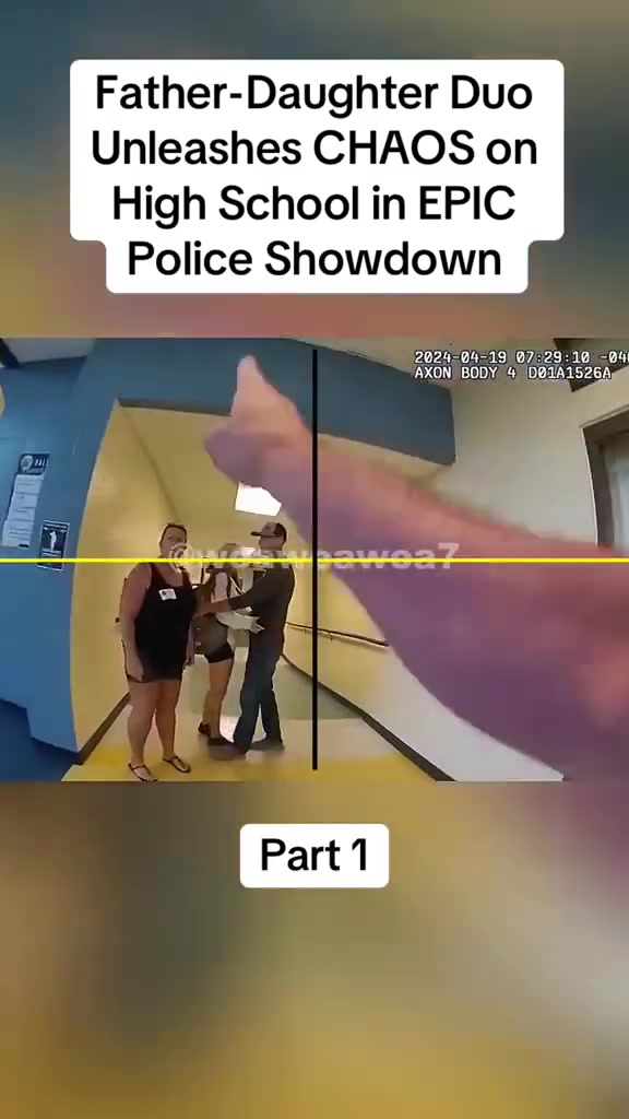 What started as a heated argument between a student and school staff quickly spiraled into an unbelievable scene that left an entire high school stunned. A father–daughter duo turned an ordinary morning into a full-blown police showdown — and the footage is now making waves online.