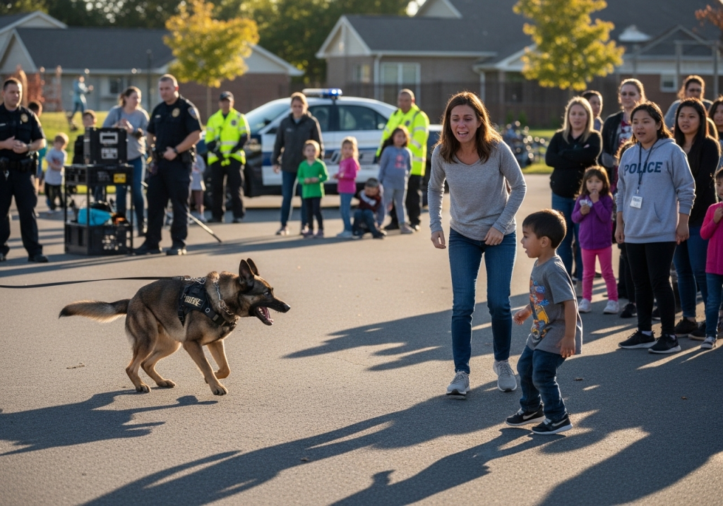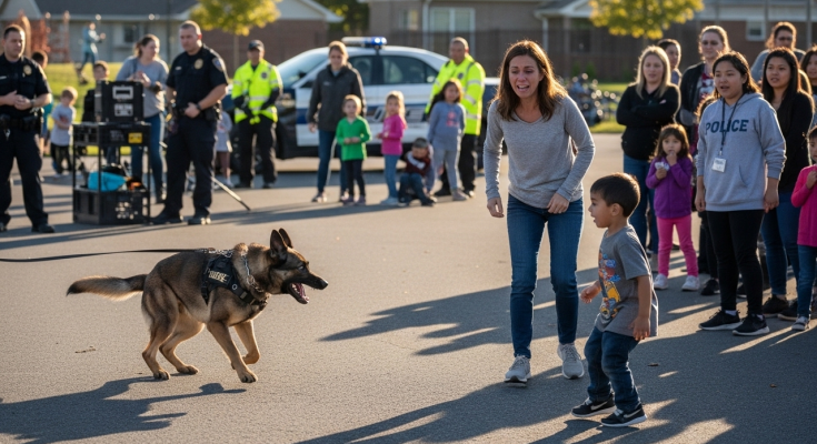 “Titan! Heel! Down!” Officer Davies screamed as he finally reached them, his face a mask of sweat and pure, unadulterated panic. He reached for the dragging leash, his hand shaking so hard he almost missed it. He was ready to tackle the dog, ready to put his own body between the animal and the child, surely expecting a lawsuit, a firing, or worse.