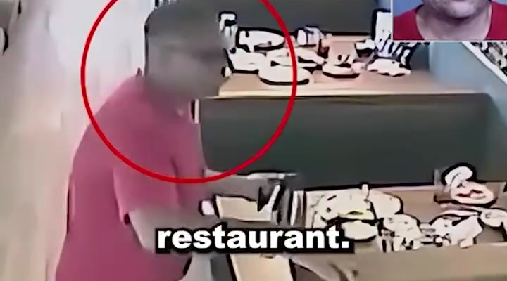 The footage begins like an ordinary day — customers sitting in booths, servers moving calmly between tables, and families enjoying their meals. Everything appears normal until a man wearing a red shirt suddenly stands up and begins acting erratically. Witnesses say he was muttering to himself before aggressively approaching two women seated nearby.