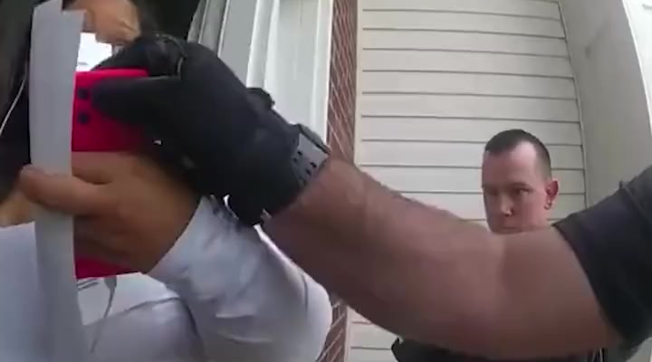 When authorities finally confronted her, the moment was tense. Bodycam footage shows the woman standing in disbelief, clutching paperwork handed to her by officers. Her wide-eyed expression quickly spread online, becoming a viral snapshot of the instant she realized the scale of the accusations against her.