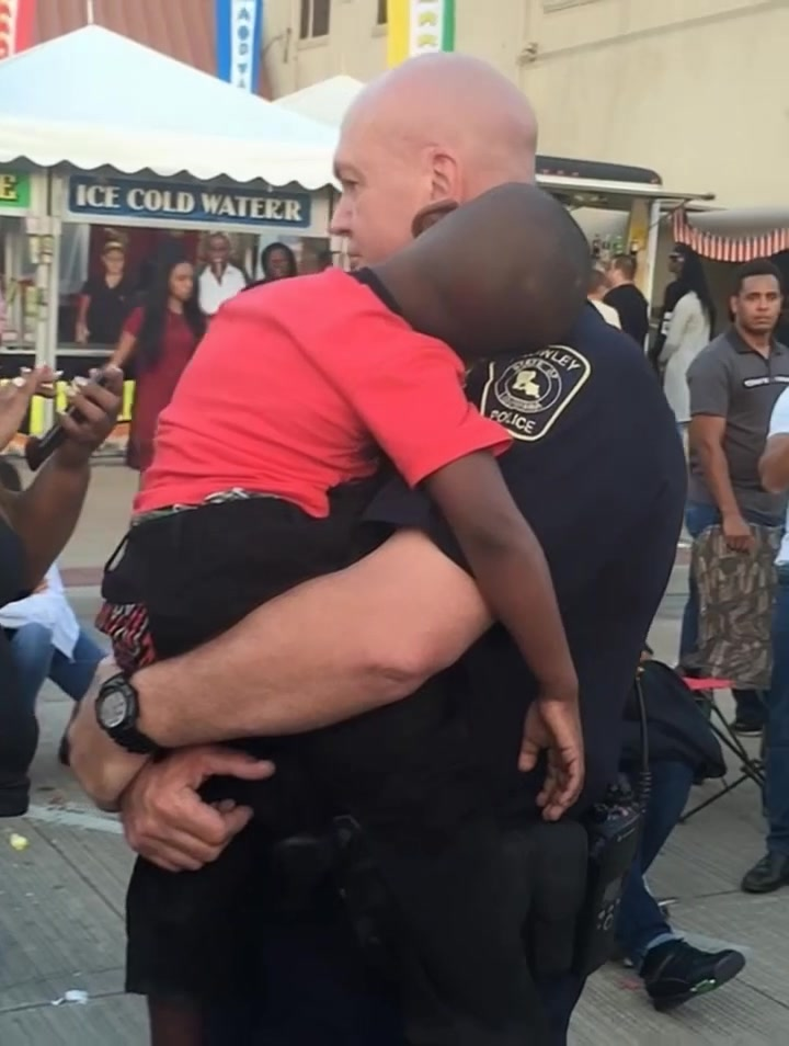There is no urgency in his movement. No visible stress. Instead, there is a quiet attentiveness—a focus entirely on the child in his arms.