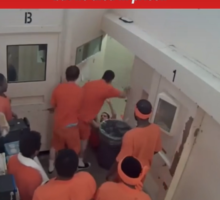 Inmates can be seen crowding near a stairwell, where Jason—isolated and vulnerable—is surrounded. What followed was a brutal beating. No guards intervened in time.