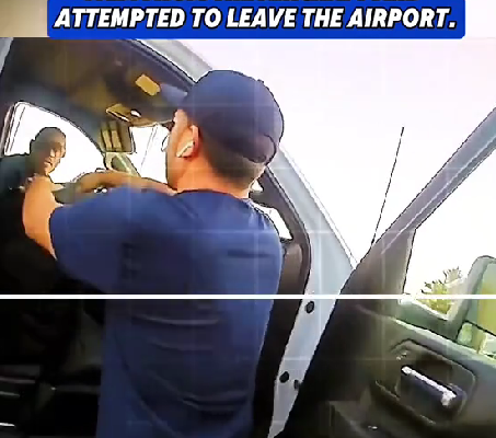 According to reports, the passenger allegedly grabbed an item belonging to the aircraft before deplaning. Surveillance footage and bodycam video show officers confronting the suspect near a vehicle outside the terminal. When questioned, the man appears confused, claiming he “didn’t realize” he wasn’t allowed to take it — but officers weren’t buying it.