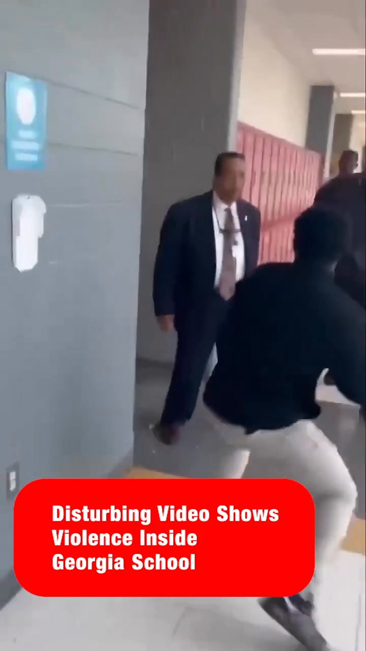Video circulating on social media shows a violent altercation inside Martin Luther King Jr. High School in Lithonia, DeKalb County, Georgia, where a confrontation between students and a teacher escalated into a chaotic hallway fight.