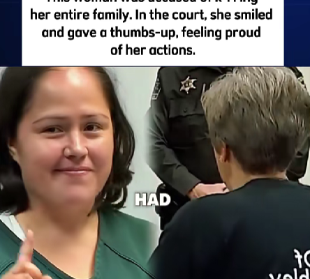 The accused woman, facing charges related to the tragic and violent loss of multiple family members, walked into the courtroom wearing a calm expression. As the judge outlined the accusations — including allegations that she klld her entire family — observers were struck by her unsettling reaction. At one point, she looked directly into the cameras, smiled softly, and lifted her thumb in a gesture that many described as “cold,” “emotionless,” and “deeply unsettling.”