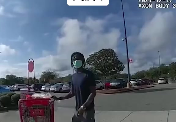 Bodycam footage shows the moment officers approached the suspect, who appeared calm at first. One officer can be heard saying, “Sir, we just need to talk to you about the items in your cart.” But within seconds, the situation escalated — the man abandoned the cart, jumped into a nearby car, and sped off.