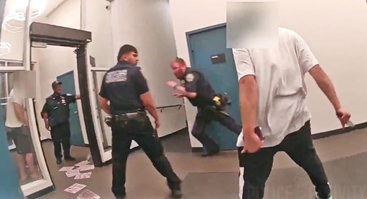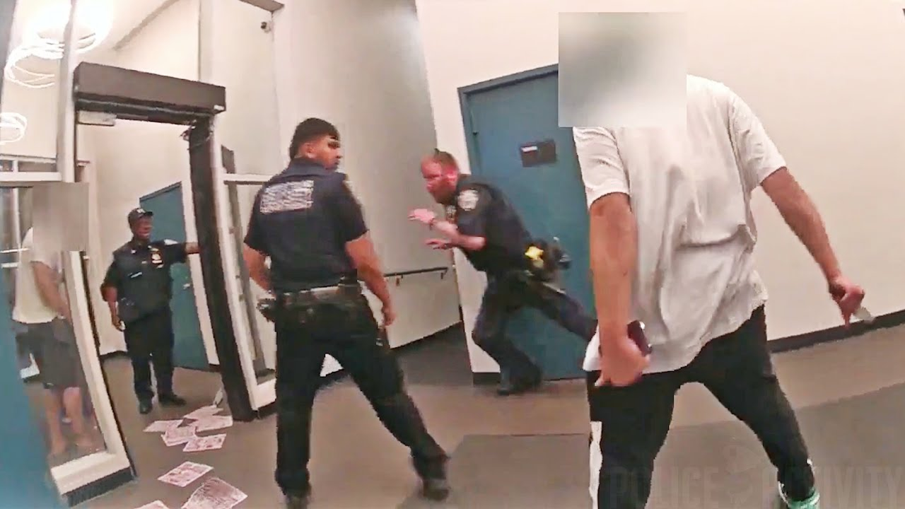 The incident happened inside a residential building on the evening of Aug. 4. NYPD officers were responding to the building for a report of a domestic disturbance, the New York Daily News reports. Body-worn camera video released Friday shows officers in the lobby preparing to go up the elevator when the suspect, identified as a 21-year-old man, exited another elevator nearby.