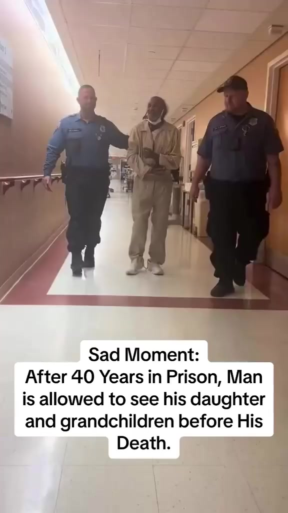 A deeply emotional video is sweeping across social media after showing a frail, elderly inmate being escorted down a quiet hallway by correctional officers — not to court, not to a cell block, but to see his family for the first time in decades. After 40 long years in prison, this man was finally granted a compassionate visit with his daughter and grandchildren as his health rapidly declines.