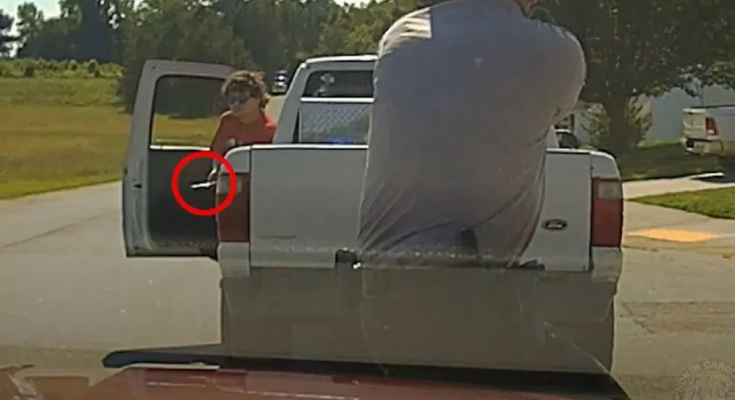 Cook can be seen retreating to his patrol car as Diaz points the gun at him out of the passenger side window before exiting the truck with the gun.