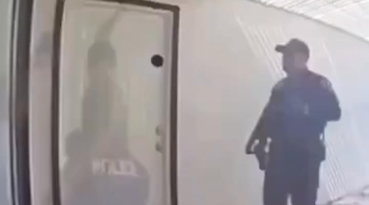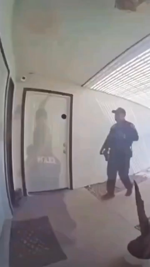 The video, which soon spread across social media platforms, captures the suspect sprinting full force toward the officer standing near the doorway of the home. Without hesitation, the officer responded with precise and measured action, intercepting the aggressor mid-charge and defusing the threat before it escalated. Witnesses nearby could be heard reacting with shock as the encounter played out so quickly that most viewers had to replay the clip to fully understand what had happened.