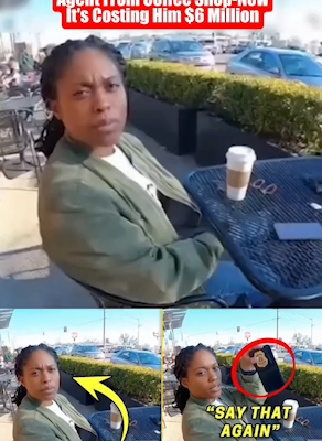 A viral image circulating online is igniting heated debate and strong emotions, as viewers react to a tense moment that allegedly unfolded at a coffee shop. The image shows a woman seated calmly at an outdoor table, a coffee cup in front of her, looking directly at the camera. Bold captions claim she was questioned, labeled as “suspicious,” and later removed from the location—sparking accusations of bias and unfair treatment.