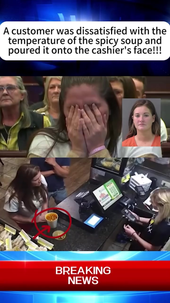 What started as a simple complaint about soup turned into a horrifying assault inside a busy restaurant. A woman, furious over the temperature of her spicy soup, shockingly poured it directly onto the cashier’s face in front of stunned customers.