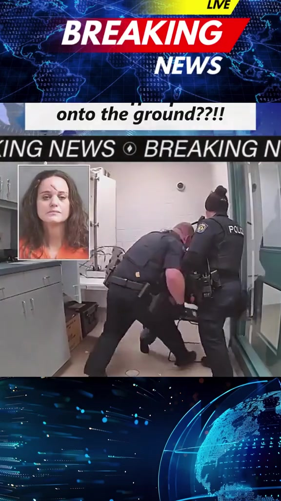The footage begins with the woman, wearing an orange jumpsuit, appearing visibly upset as officers attempt to restrain her. Moments later, things escalate quickly — she’s forced onto the floor, and the loud impact leaves everyone in shock.