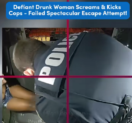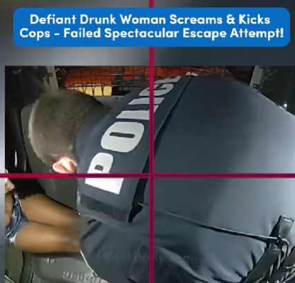 The video begins with officers attempting to calm her down, but their efforts quickly spiral out of control. As they try to place her in the back of the patrol car, the woman starts screaming profanities, kicking the doors, and yelling that she’s “not going to jail tonight.” Within seconds, she manages to slip one hand out of her cuff and makes a sudden dash toward the open car door.