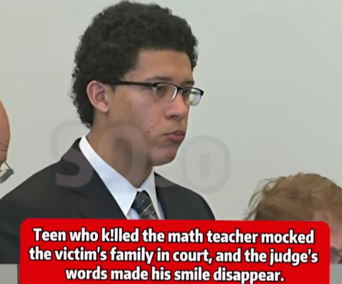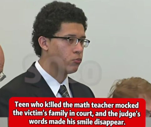 A packed courtroom went silent this week during the emotional sentencing of 18-year-old Marcus Hale (a fictional name), the teenager convicted of k*lling his high school math teacher. What began as a brazen display of contempt — the defendant openly mocking the victim’s family from the dock — ended with a moment so raw and definitive that cameras caught a smirk evaporate from his face and a hush descend over everyone present.