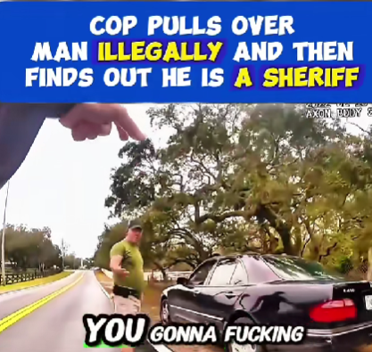 The footage captures the exact moment the officer realizes his error. He pauses, glances at the badge, and immediately takes a step back. “Wait— you’re the sheriff?” he asks, visibly panicked. The sheriff, meanwhile, appears both annoyed and amused.