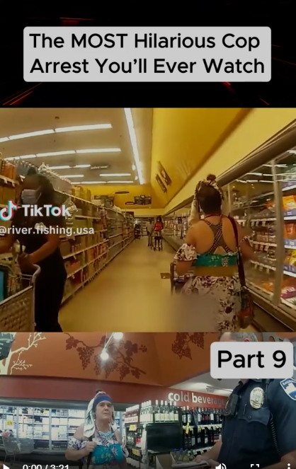 What starts as a simple grocery run quickly spirals into one of the most unexpectedly hilarious moments ever captured on a police bodycam. The viral TikTok clip posted by @river.fishing.usa titled “The MOST Hilarious Cop Arrest You’ll Ever Watch (Part 9)” has the internet in stitches — and it’s easy to see why.