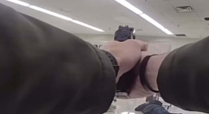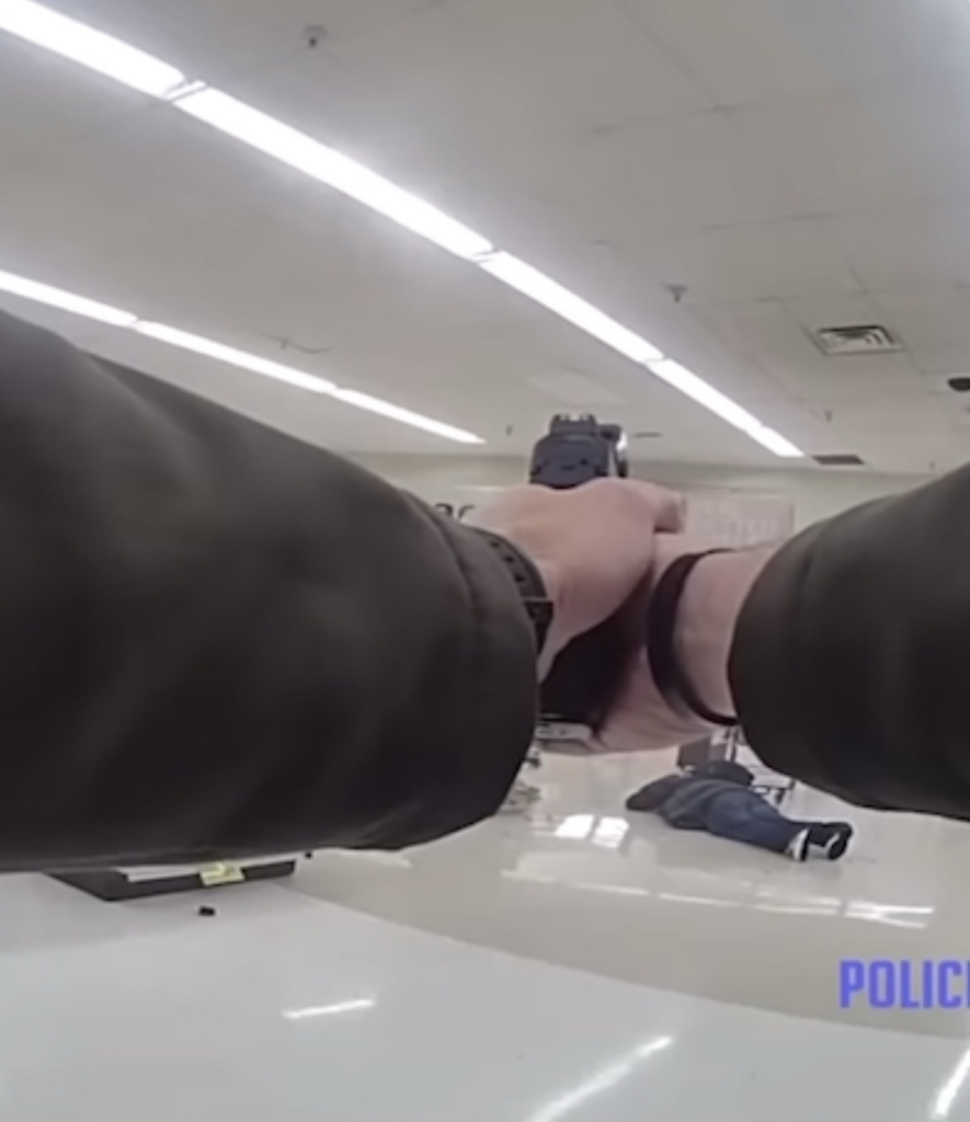 In the video, deputies can be seen repeatedly instructing the man to drop the bladed weapons as he initially stands outside the store. Despite warnings, he retreats inside, prompting deputies to warn customers to take cover.
