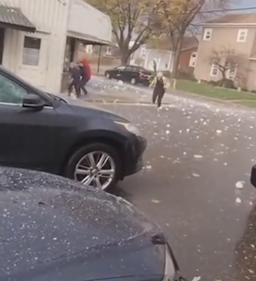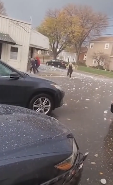 The dramatic footage, captured by witnesses on their phones, shows people sprinting across the street as huge pieces of ice slam into the ground, bouncing violently off cars and rooftops. Within minutes, the roads looked like they had been blanketed with snow — except this wasn’t snow. It was solid ice, each piece large enough to cause serious injury.