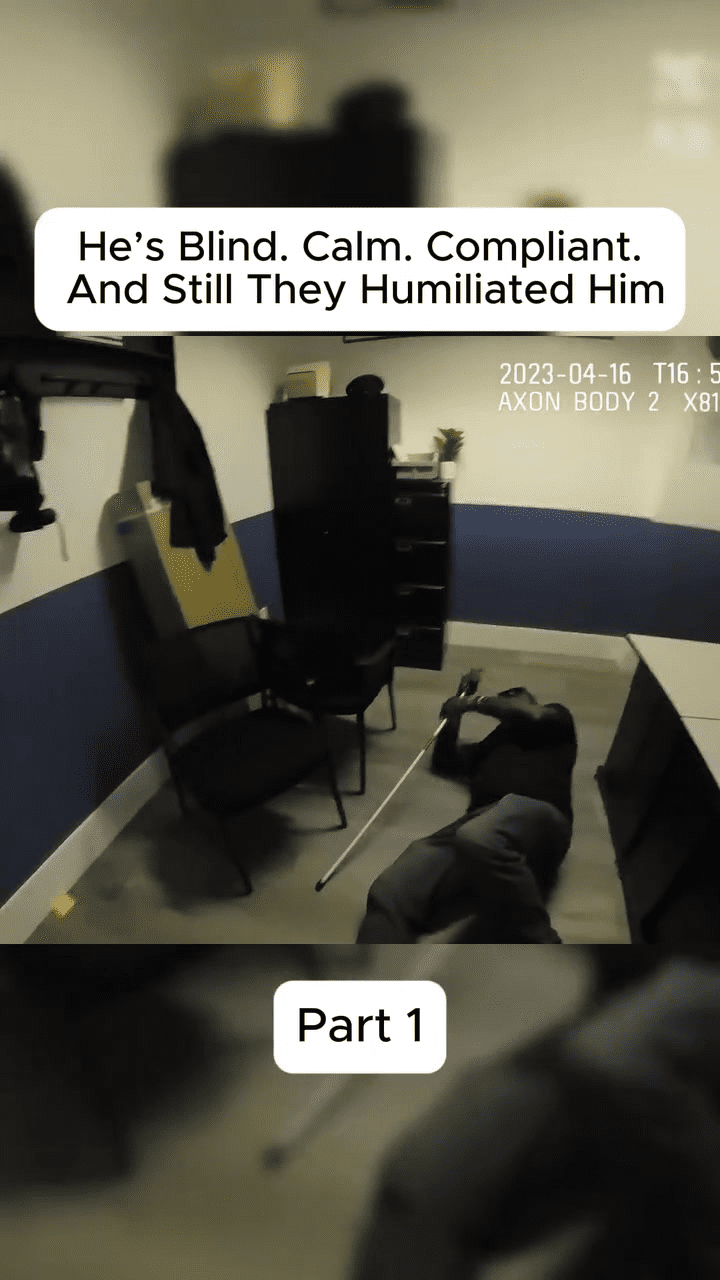 The video shows the man, cane in hand, clearly identifying himself and following commands. Yet, instead of receiving the patience and understanding he deserved, he was met with humiliation and unnecessary force.