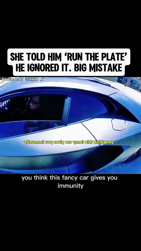 A tense traffic stop captured on video is racing across social media, and viewers can’t stop replaying one chilling moment. The clip shows an officer leaning toward a car window, issuing a firm command—“Run the plate”—as the driver sits behind the wheel. According to the bold caption overlay, the driver ignored that instruction. What followed, the post claims, was a “big mistake.”