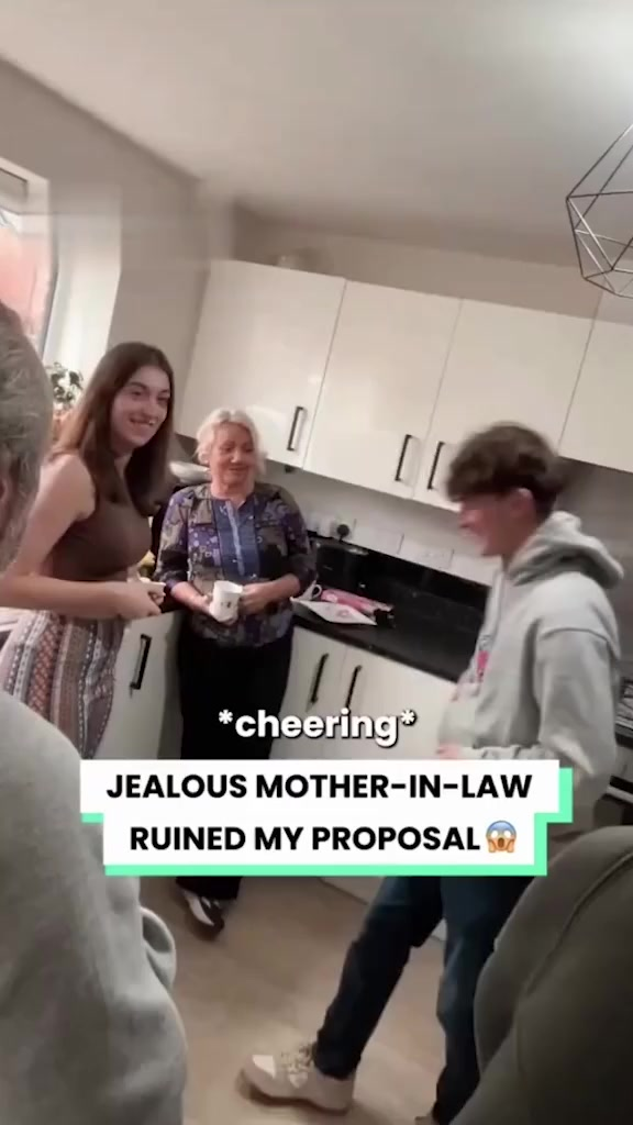 The video begins with the boyfriend holding a ring box, smiling nervously as his partner realizes what’s happening. Friends and family can be heard cheering in the background — until the mother steps into frame, looking visibly unhappy. Instead of sharing in the excitement, she reportedly mutters something under her breath before trying to stop the proposal mid-sentence.