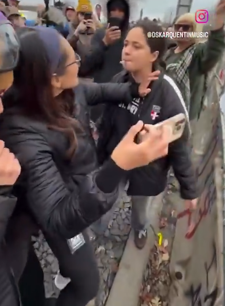 Nearby surroundings remain calm, with no major disruption to traffic or activity. The environment contrasts with the emotional intensity of the moment unfolding within the interaction.